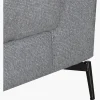 Materiales: Madera de Pino, Metal, Espuma de 24kg/m^3, Tapizado en Gris.