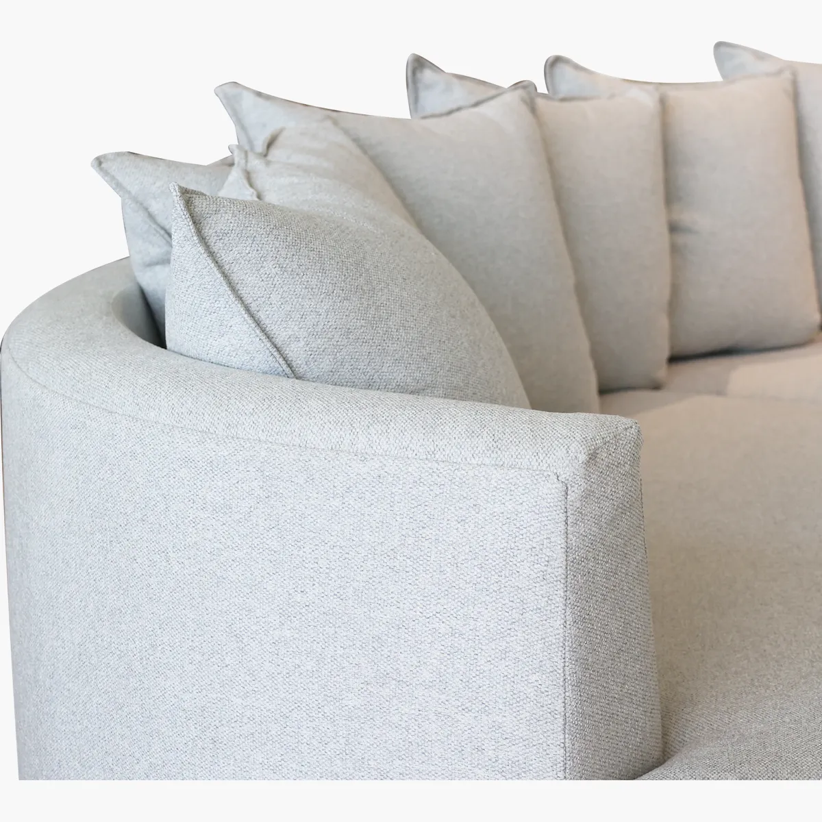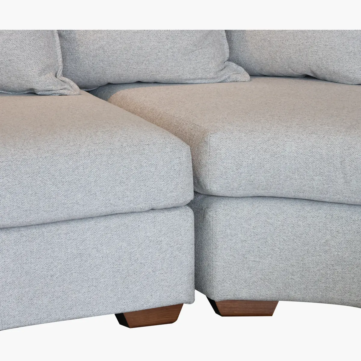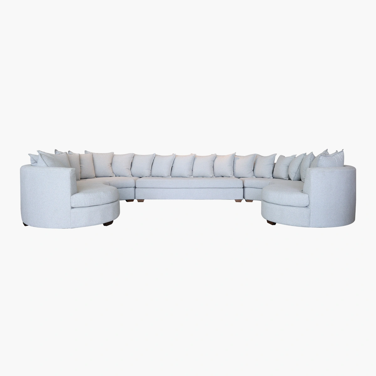 Sus líneas curvas y cojines abundantes brindan un aspecto contemporáneo y acogedor, ideal para salas amplias y espacios sociales. Su estructura reforzada y cojines de alta densidad aseguran durabilidad y comodidad en cada uso.
