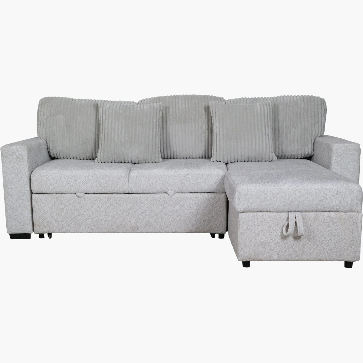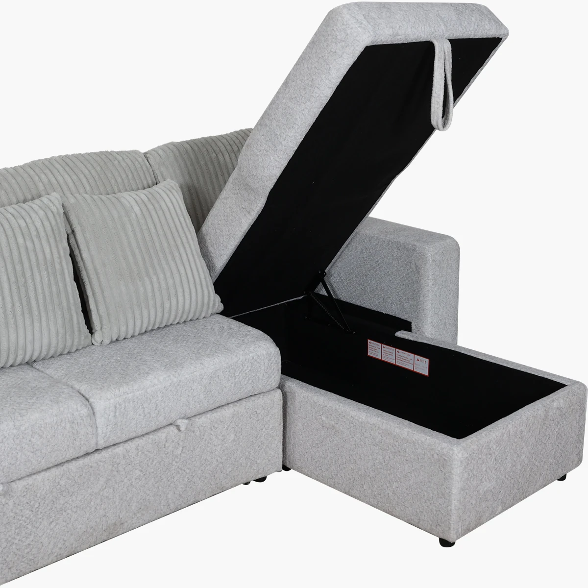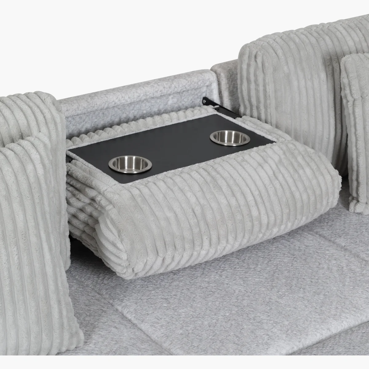 Incluye un chaise con compartimiento oculto para almacenar cojines, sábanas o accesorios. El respaldo central se pliega hacia abajo para ofrecer 2 portavasos, perfecto para disfrutar de una tarde de películas.