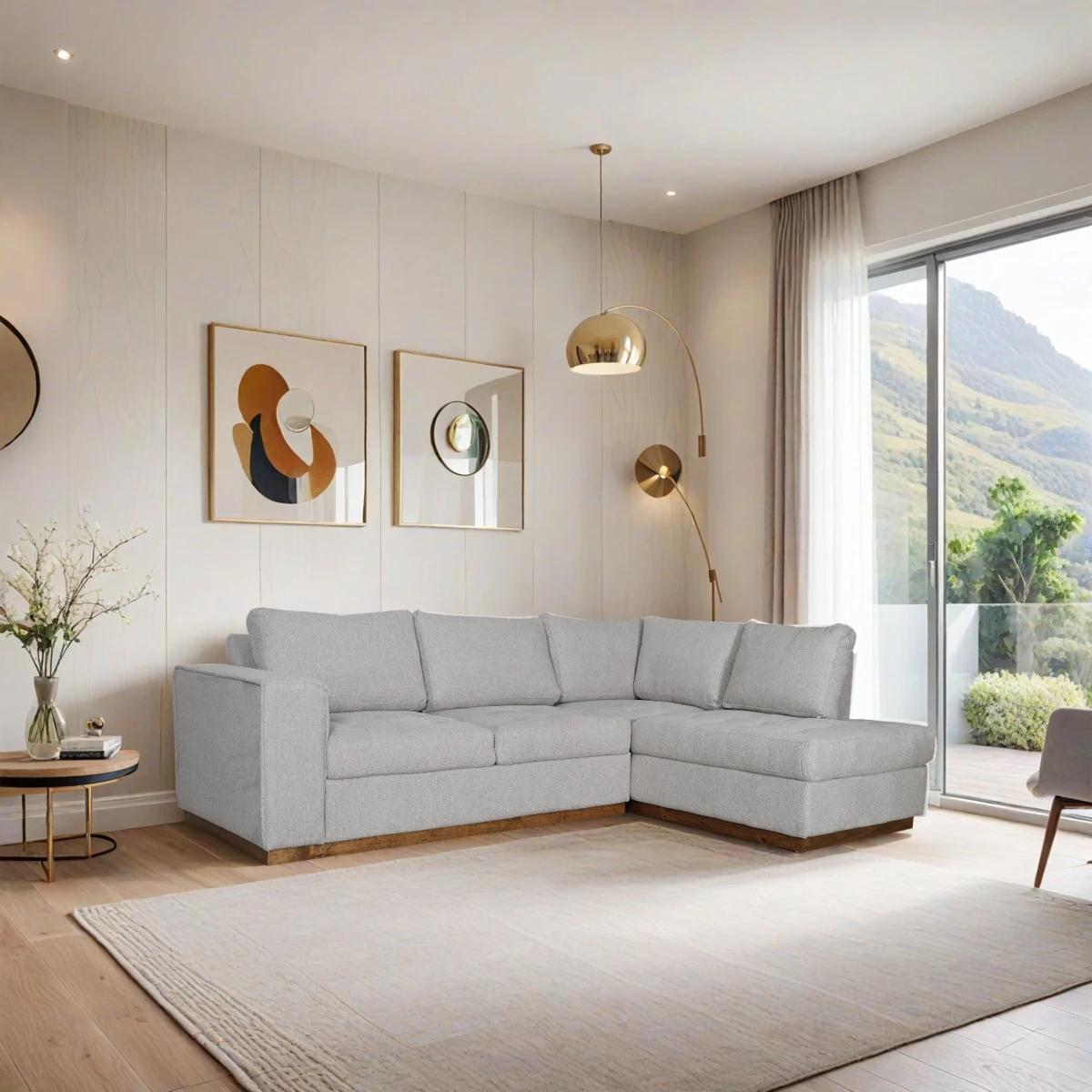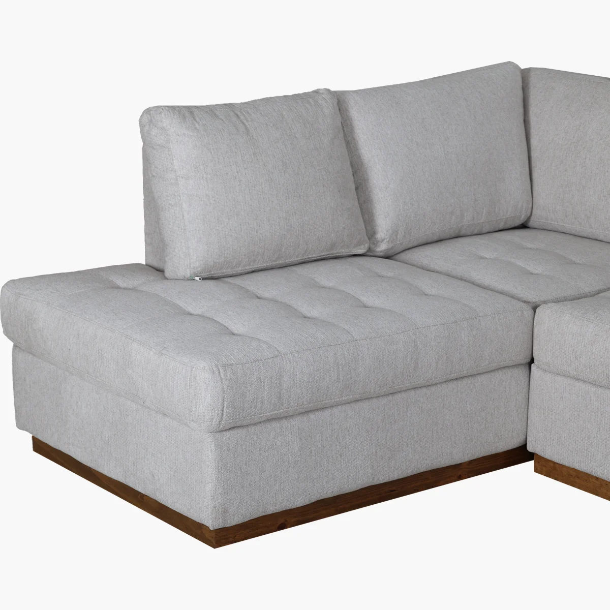 Su diseño modular permite elegir la orientación del chaise longue en lado derecho o izquierdo, adaptándose a cualquier distribución. Los asientos amplios y cojines de respaldo suaves garantizan una experiencia de descanso excepcional.