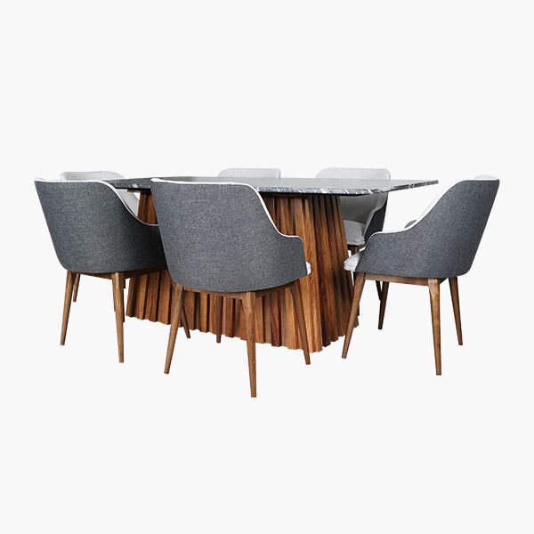 La calidad de los materiales utilizados es destacable, con la mesa fabricada en Granito y las sillas en madera sólida, lo que asegura una durabilidad y resistencia a largo plazo. El tapiz Annabelle en las sillas agrega un toque de elegancia y comodidad, lo que lo hace ideal para espacios de uso diario. La combinación de materiales y diseño práctico lo convierte en un mueble versátil y funcional para cualquier hogar.