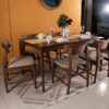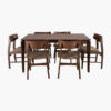 Elegante, minimalista y hermosa mesa con sillas para comedor. Mesa y sillas con estructura fabricada de madera sólida en tono Nogal con cubierta de Chapa de Nogal y cómodo y amplio asiento en tono trigo con respaldo curvo. ⇒ Producto con envío sin costo a todo México, RTA Ready to Assamble – “listo para armar”.