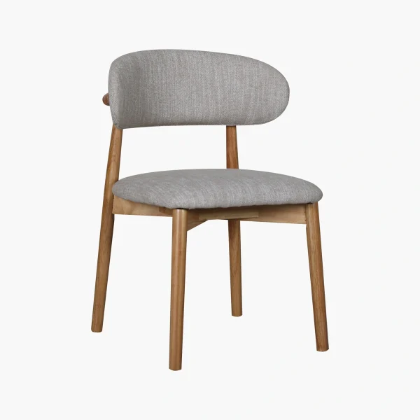 El set se complementa con 6 sillas Garda en tono roble con tapiz en tela gris. Su diseño destaca por un respaldo acolchado de líneas suaves y redondeadas y una silueta ligera que se ve elegante sin recargar el comedor.