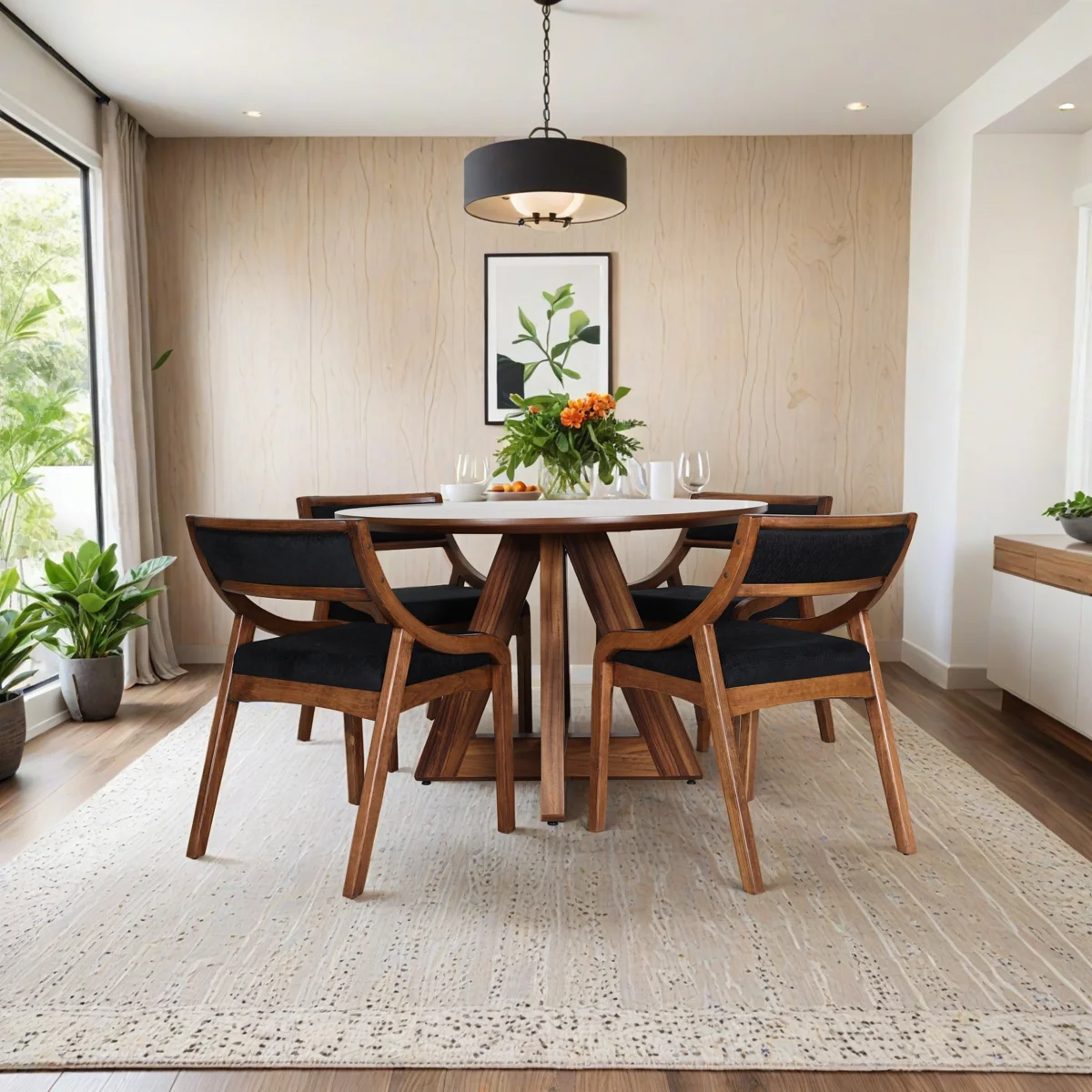 Comedor presentado en foto con Silla Palermo Tapizada en Infinity color Negro