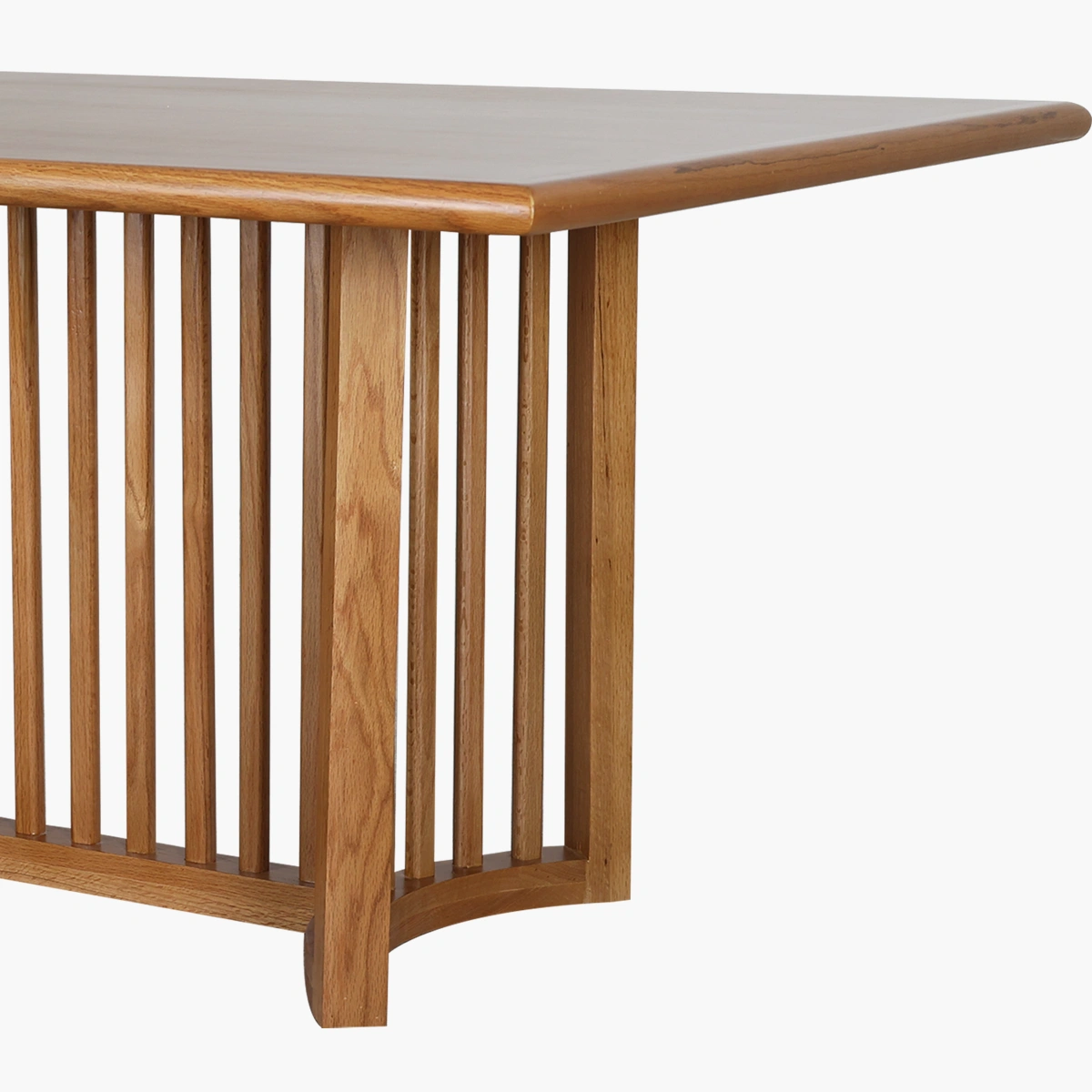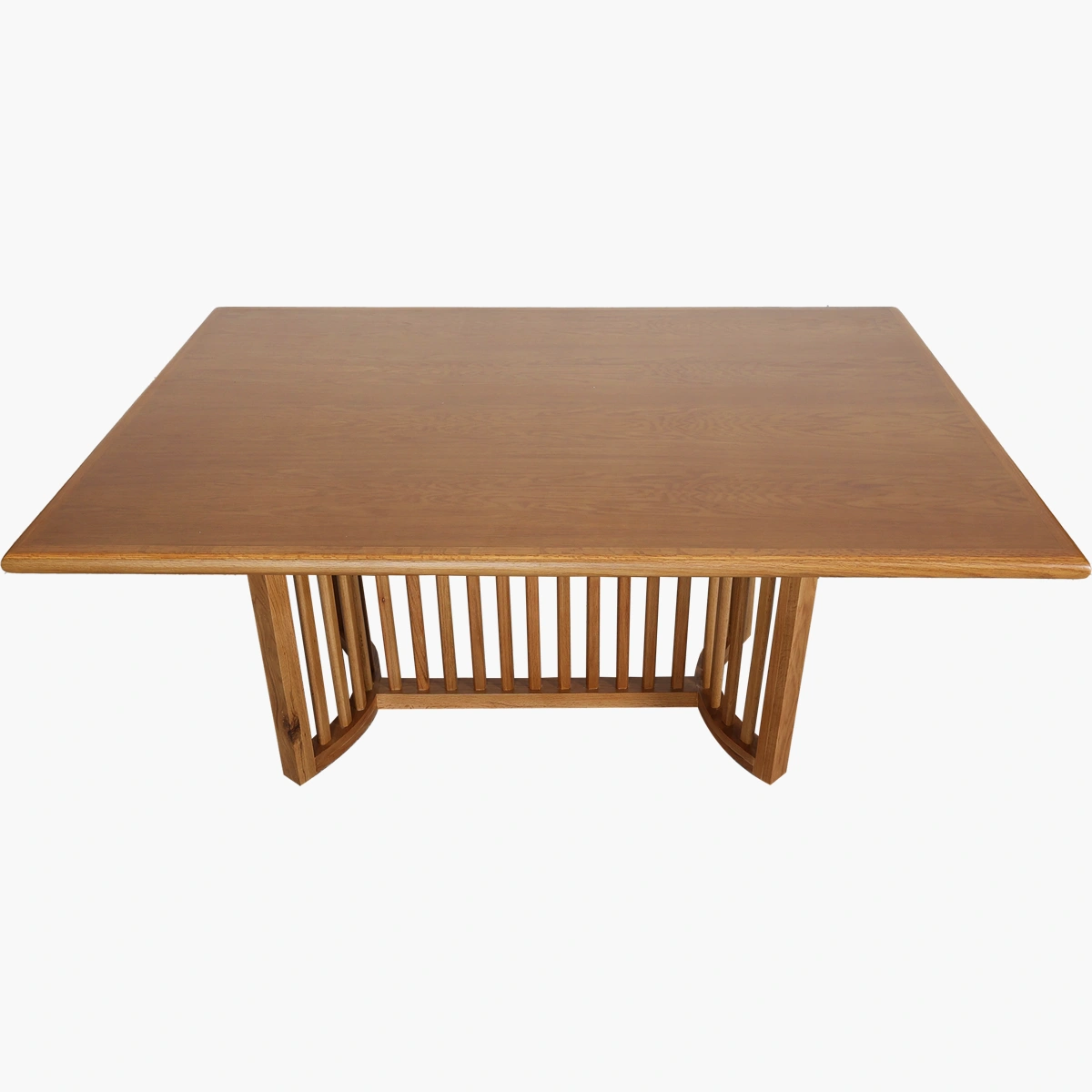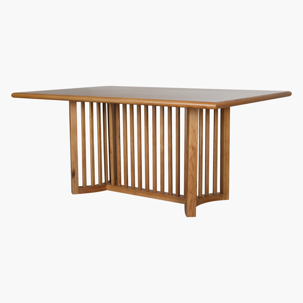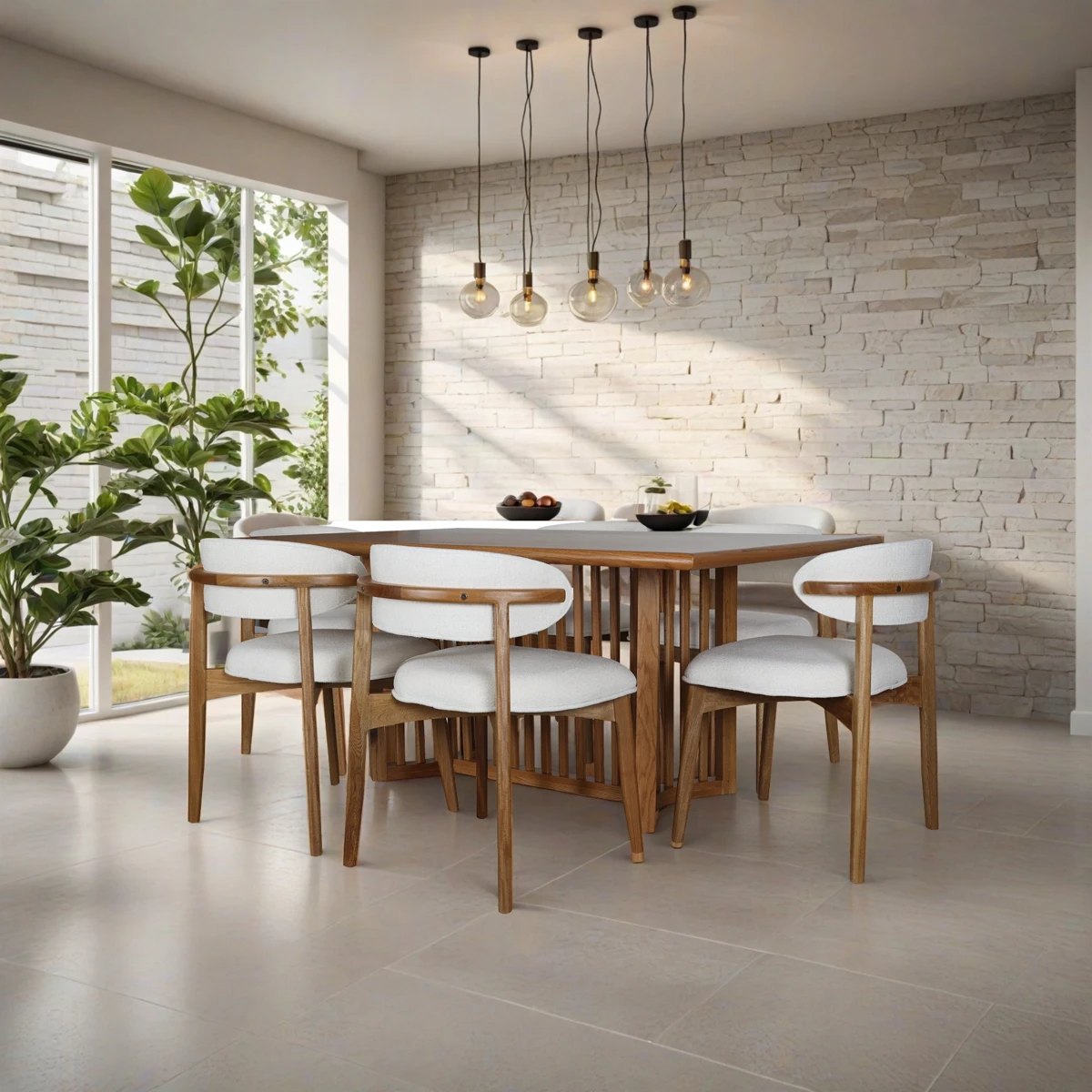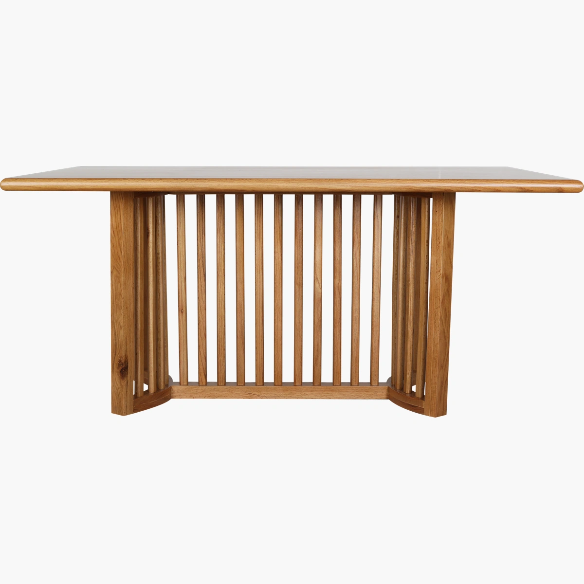 La Mesa de Comedor San Francisco destaca por su diseño elegante y estructural, ideal para comedores modernos y contemporáneos. Su base compuesta por listones verticales crea un efecto visual ligero y sofisticado, permitiendo que la pieza destaque sin saturar el espacio.