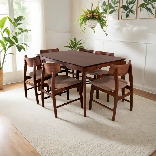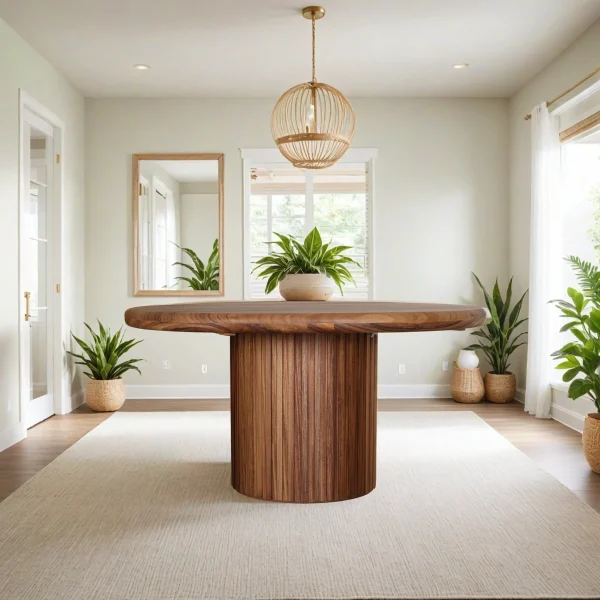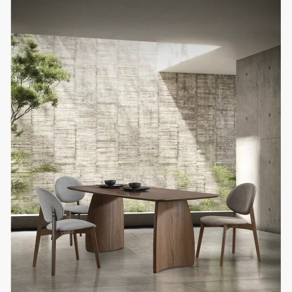 Elegante, minimalista y hermosa mesa para comedor fabricada en madera sólida en tono Roble con cubierta de Chapa de Roble.