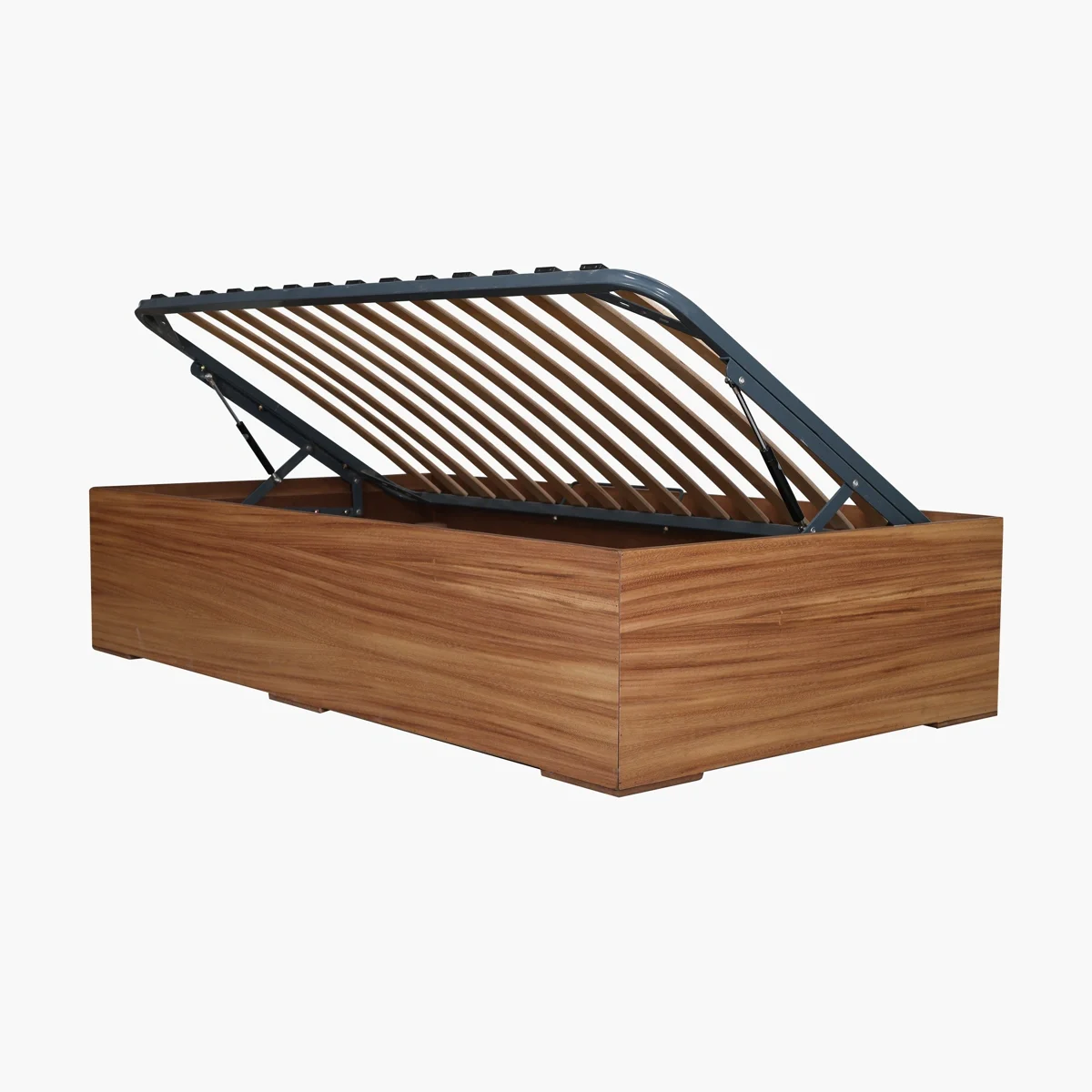 La Base de cama Individual Baúl cuenta con una construcción en todo su contorno de Chapa de Parota para lograr el soporte y durabilidad de una base para cama de excelente calidad. Pistones de alta calidad para poder levantar y bajar la base y acceder a todo el baúl dentro de ella. Tarimas de madera y herraje de alta calidad para soportar el colchón con gran estabilidad.