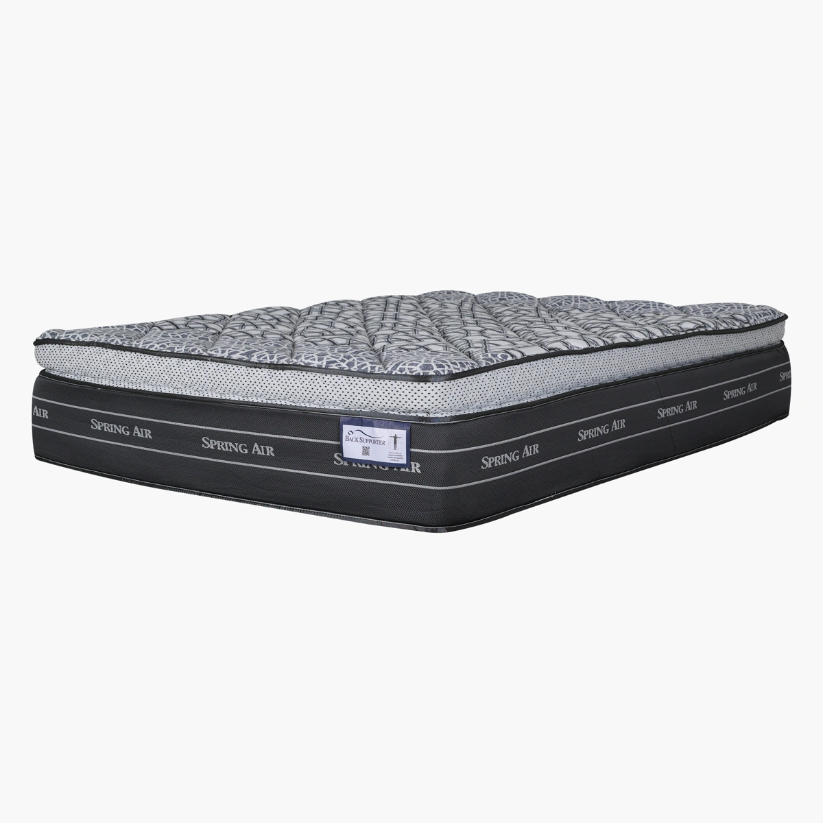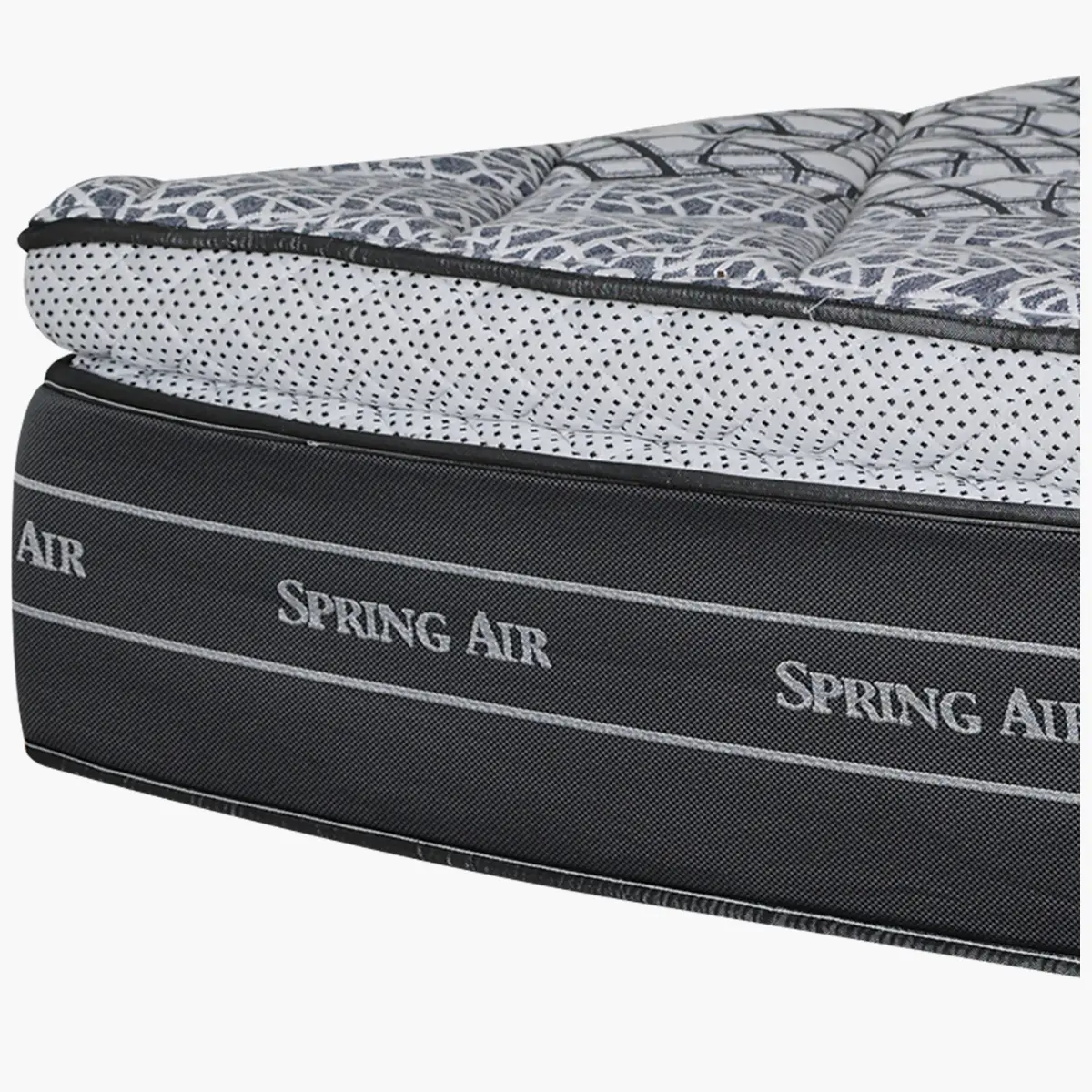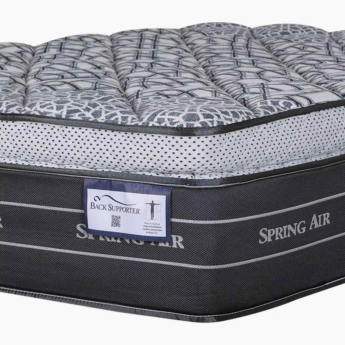 Colchón Matrimonial modelo Oslo de la marca Spring Air, con 1 año de garantía. Incorpora Europillow con poliuretano de alta densidad que se adapta al cuerpo y brinda un descanso confortable. Su sistema Back Supporter ofrece un soporte especial en la zona lumbar gracias a su resorte vertical que reduce interrupciones por el movimiento de la cabeza. El refuerzo Foam Encasement otorga mayor durabilidad y hasta un 20% más de superficie útil. Además, integra la tecnología Never Turn para evitar la necesidad de voltear el colchón y está tapizado con tela importada de punto que aporta frescura.