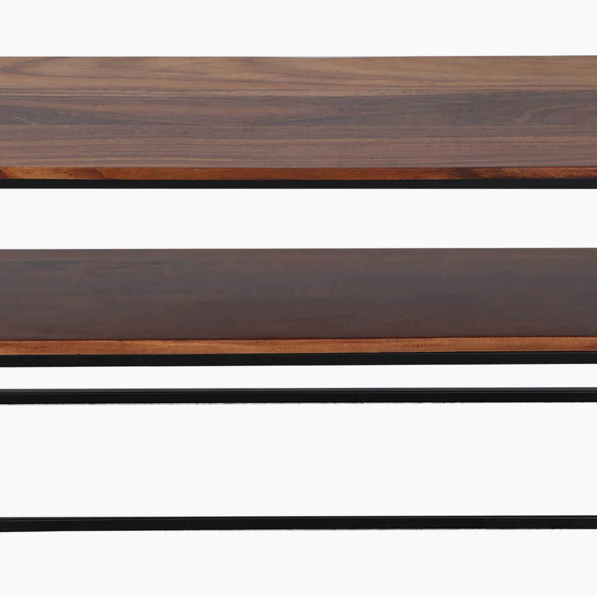 La Mesa de TV Edison combina el carácter industrial de la herrería en color negro con la calidez de la Parota sólida. Su diseño geométrico y minimalista aporta ligereza visual, mientras que el entrepaño intermedio ofrece espacio extra para consolas, bocinas o decoración. Ideal para salas modernas que buscan funcionalidad y estilo.