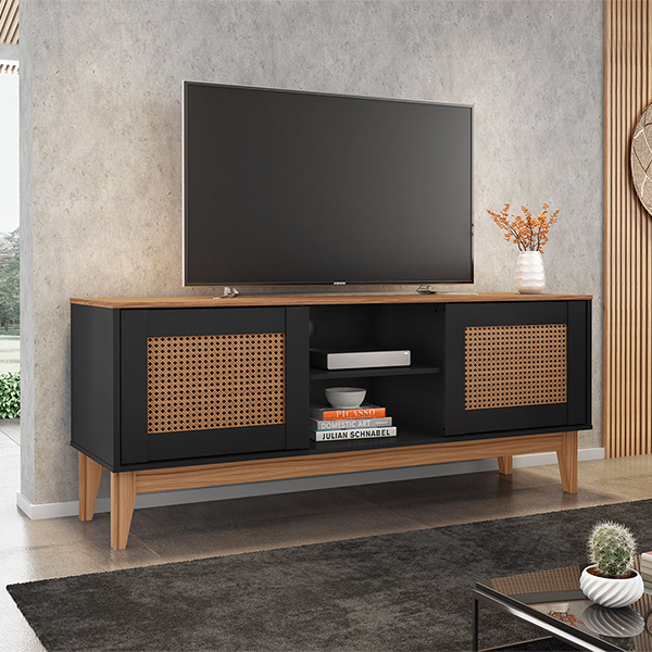 Mesa para TV Adria, fabricada por MDF|MDP pintado al alto brillo con resistente pintura UV brindando un estilo inigualable. Es una excelente opción para utilizarse como Porta TV en conjunto con el Panel Gemini. Complementando su sala de estar. Diseñada para Televisiones de hasta 70 pulgadas.