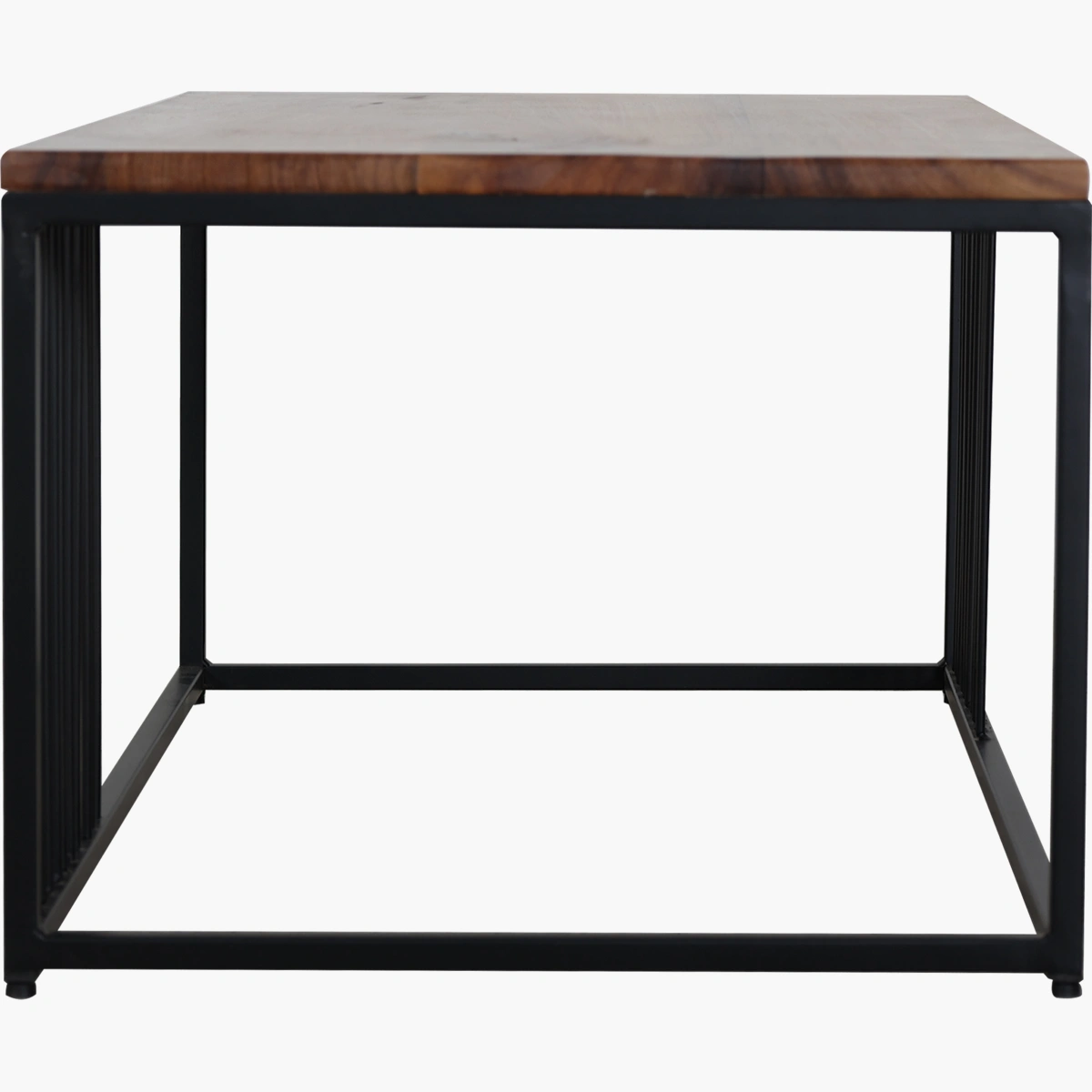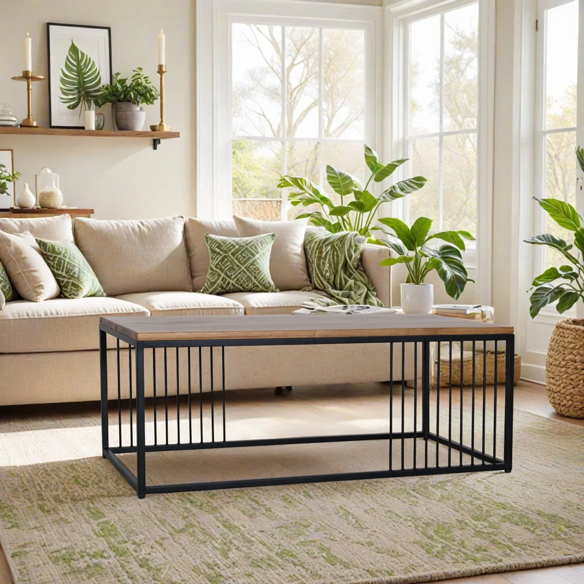 Su base metálica garantiza estabilidad y durabilidad, mientras que la cubierta de madera ofrece una superficie amplia para decorar con libros, bandejas o elementos decorativos. Un equilibrio perfecto entre resistencia, estética y funcionalidad.