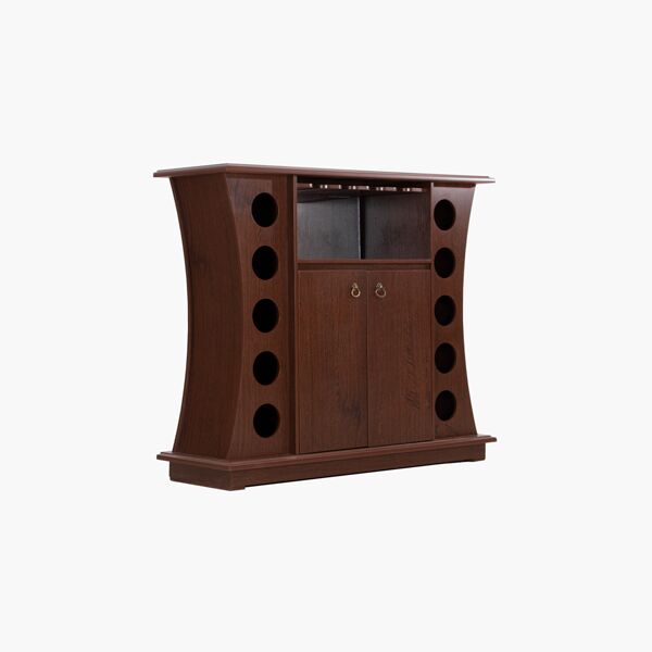 Cantina fabricada en mdf grabado en imitación encino, entintado en color tabaco. Cuenta con correderas de extensión y herrajes metálicos. Almacenaje para copas, botellas y demás complementos. Tiempo de Entrega en caso de No tener existencia: Este producto tarda un aproximado de 45 días en fabricarse después de la compra.