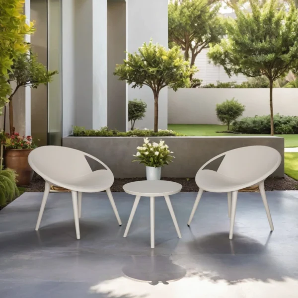 La simplicidad y elegancia destacan en nuestros modelos Aura. Mesa y sillas fabricadas a partir de Plástico con alta tecnología y acabados que te enamorarán. Cuentan con un diseño elegante y alta resistencia a los exteriores.