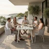Comedor Cozumel, una propuesta fresca y sofisticada para espacios al aire libre. Su diseño combina materiales resistentes con una estética moderna que embellece cualquier terraza, jardín o balcón.