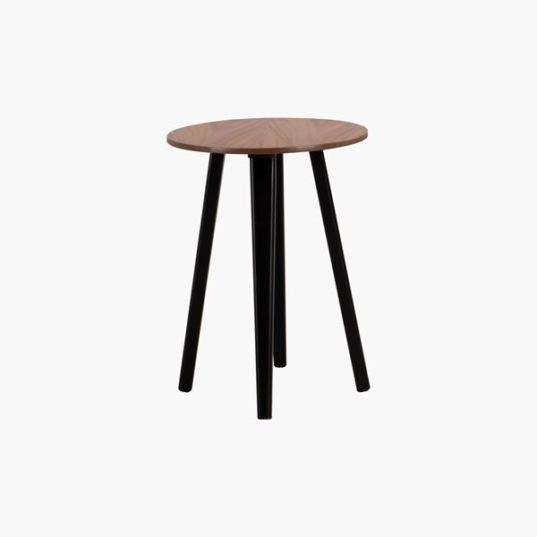 Compacta y elegante mesa lateral. Cubierta de chapa de Parota con base de pino entintado color negro. Perfecta para espacios reducidos, resaltando y acompañando la sala de su elección.