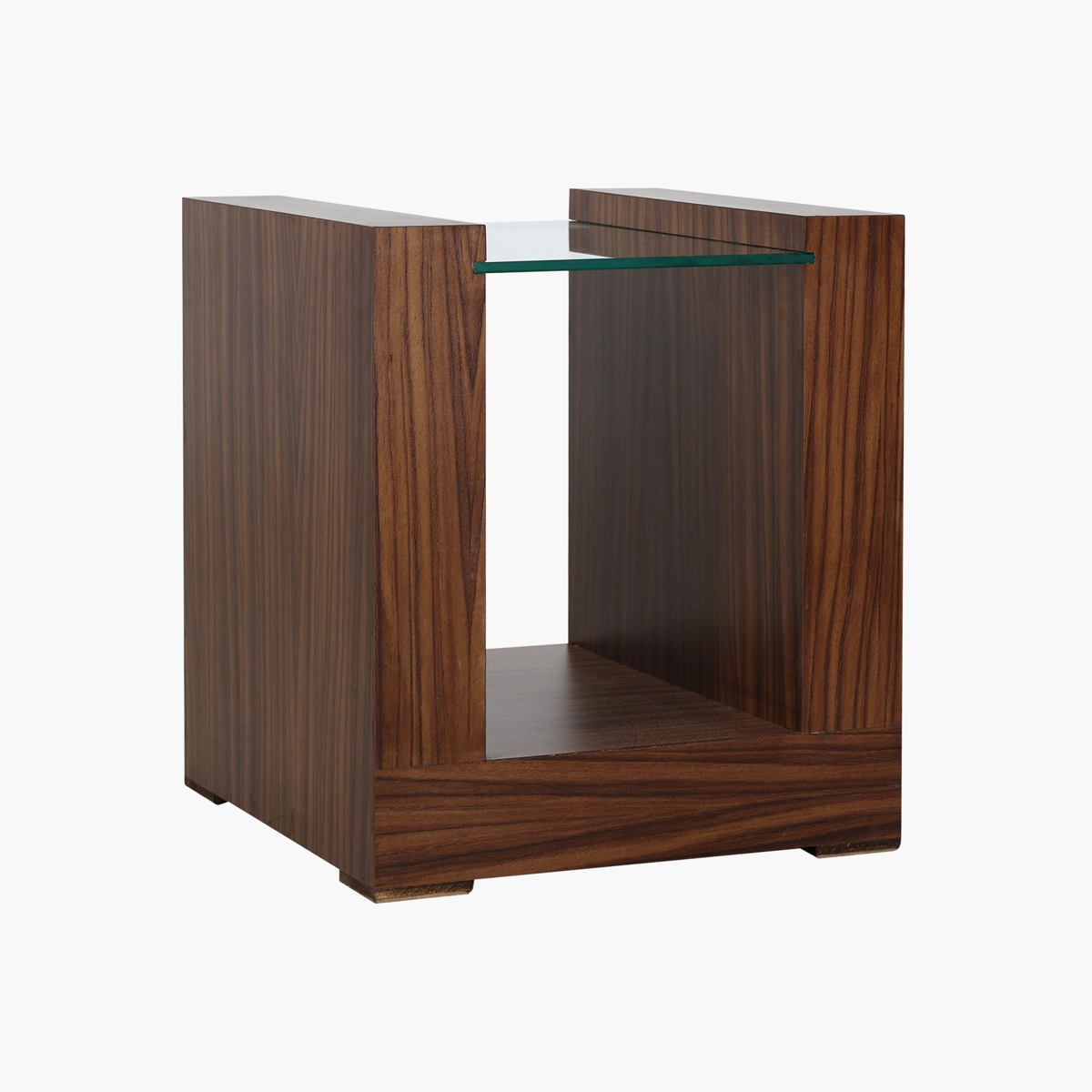 Su cubierta de cristal templado aporta un toque visual ligero y moderno, perfecta para colocar lámparas, libros o artículos decorativos. Su diseño compacto la convierte en una pieza versátil para complementar sofás o sillones.